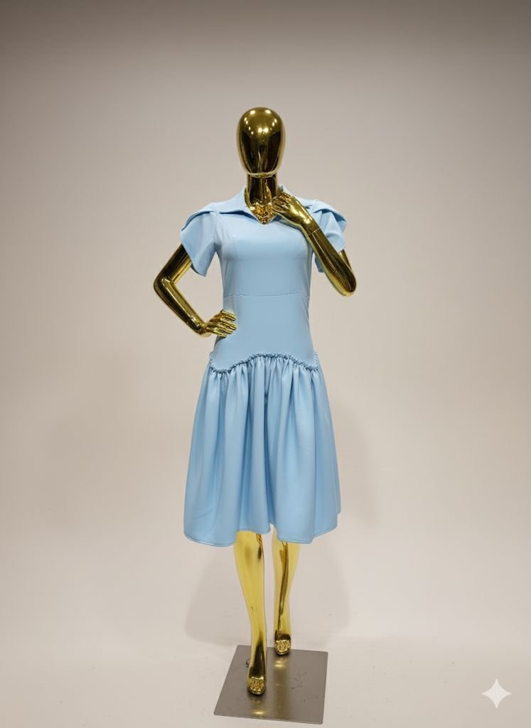 - Sleeves: Short flutter sleeves with structured pleats for a feminine, playful touch.